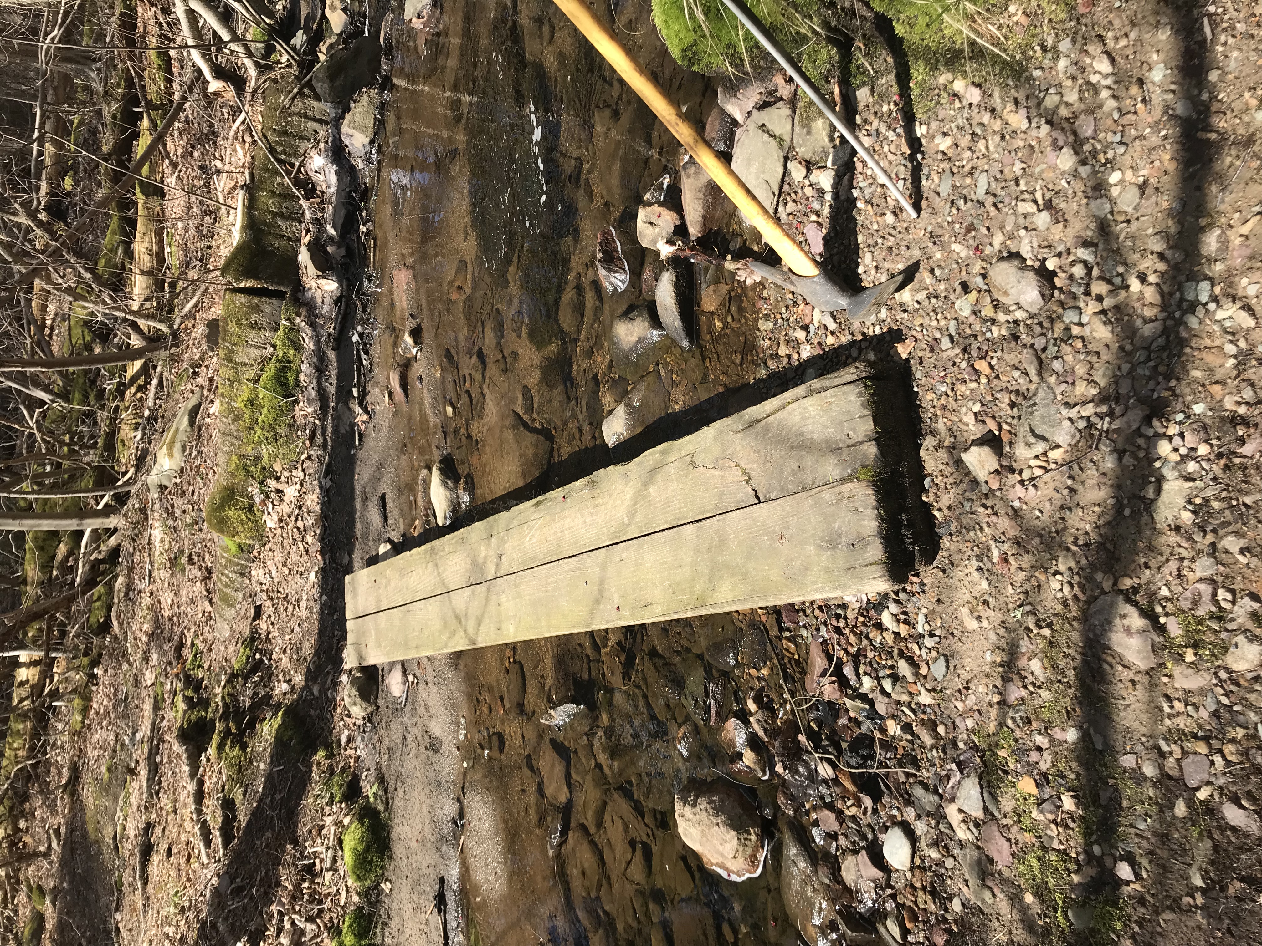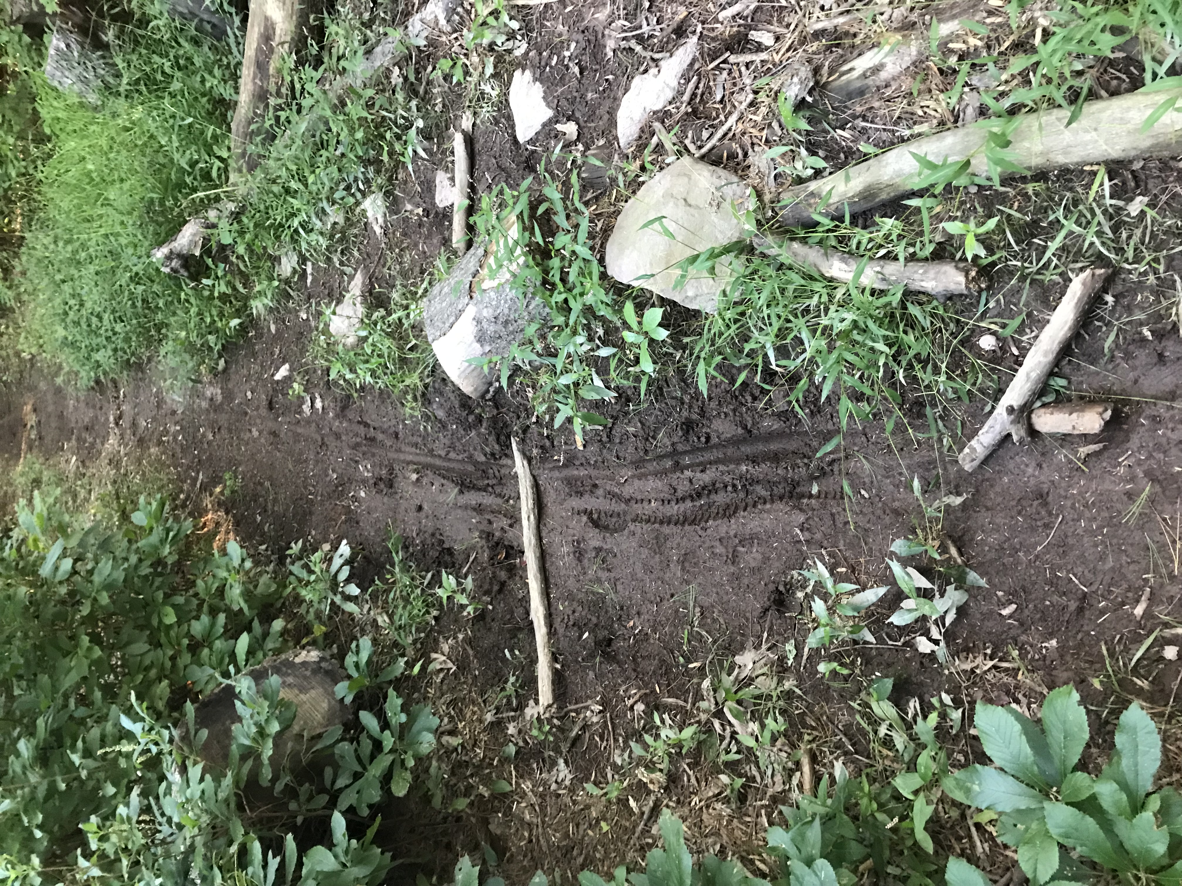 See IMG_6506 & IMG_6507 - Worked on one barely-passable mud spot (actually north of my adopted section) -- someone tried to help on this little mud spot -- we added a few more sticks and then fetched 20 lbs of bluestone gravel from the Acton Path leftovers - I don't think this is the recommended action here -- could someone advise me? The bicycle tracks are not ours -- others DO bike here!